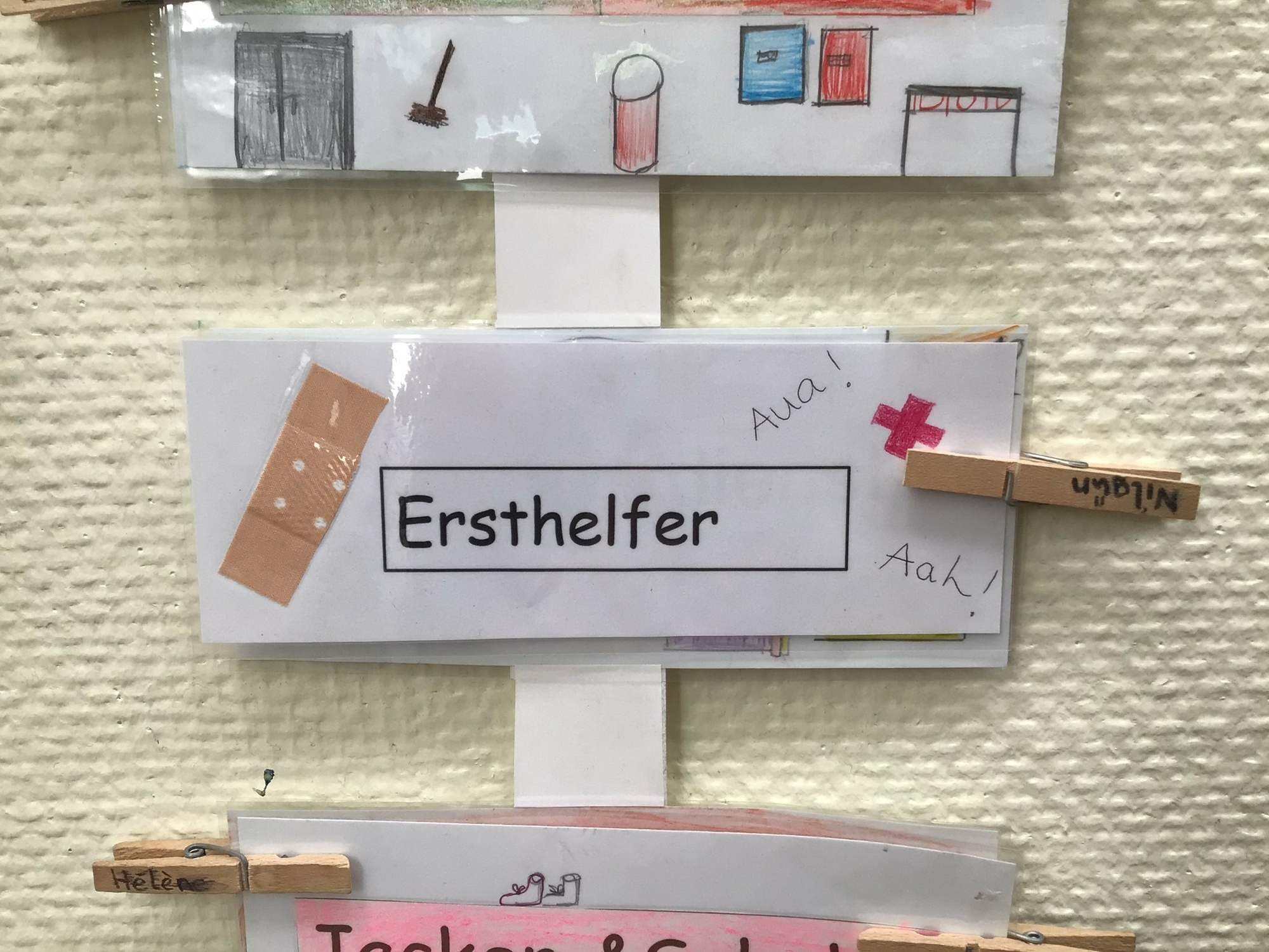 Wir haben nun im Wechsel mit der Klasse 4a Ersthelferdienst in der großen Pause.